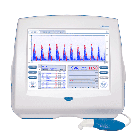 USCOM心输出量测量仪采用连续多普勒超声技术,能完全无创、准确快速地测定心功能状态。USCOM探头发射连续多普勒超声信号,探测经主动脉瓣和肺动脉瓣射出的实时血流速度,提供心脏每搏血流动力学参数信息,指导、优化对患者的治疗。